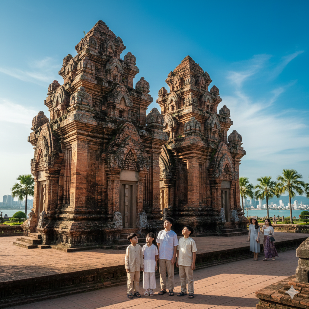 사원 자체가 붉은 벽돌로 지어진 고대 참파 왕국 건축물인데 분위기가 정말 독특했어요. 천 년도 넘은 건물이라는데 보존 상태가 좋아서 놀랐답니다. 아이들한테 역사 공부도 시킬 겸 이것저것 설명해줬는데 생각보다 관심 있게 듣더라고요. 사원 곳곳에서 사진 찍기 좋은 포인트가 많아서 인생샷도 여러 장 건졌어요.