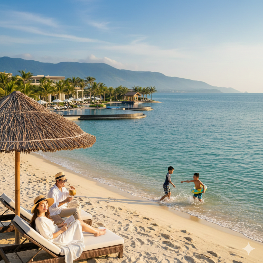 나트랑의 깨끗한 해변에서 가족과 여유로운 시간 보내기