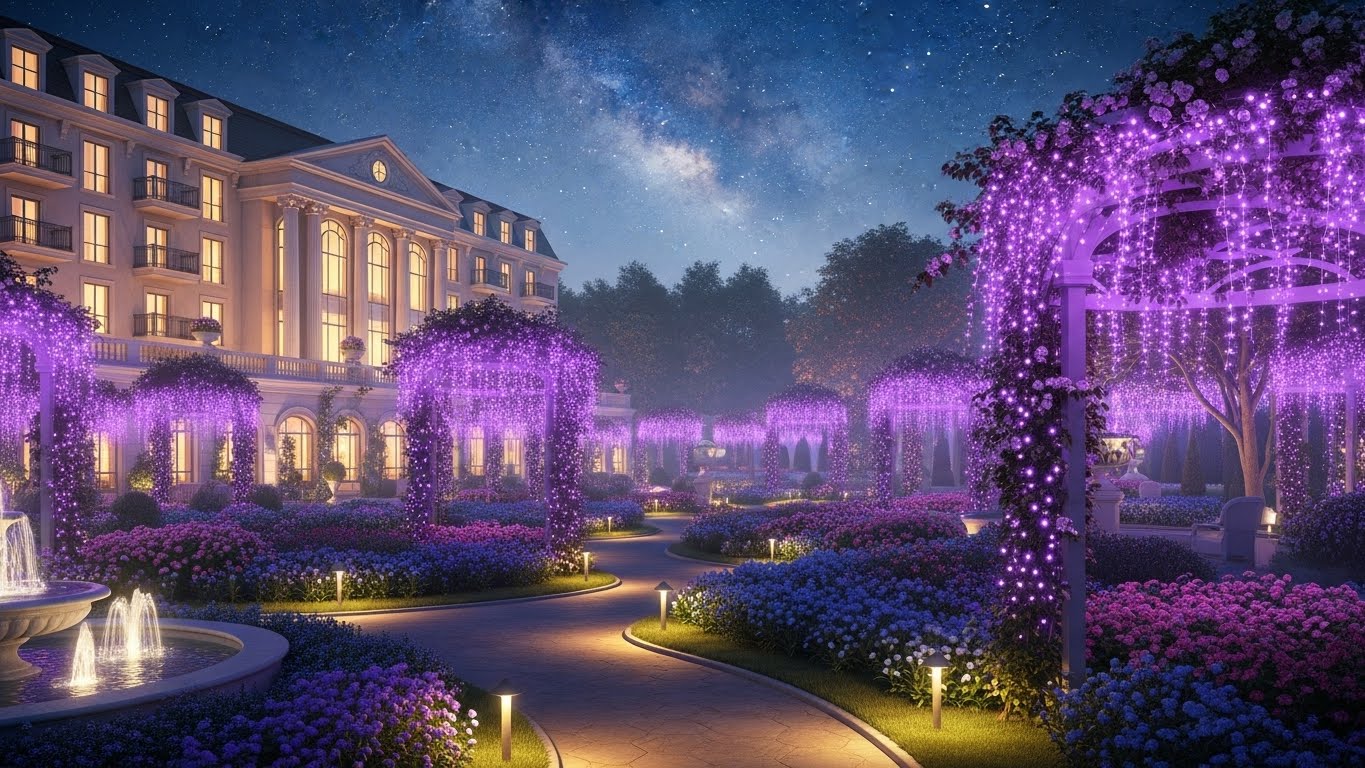 라벤더 가든의 조명이 켜지면 분위기가 달라져요.