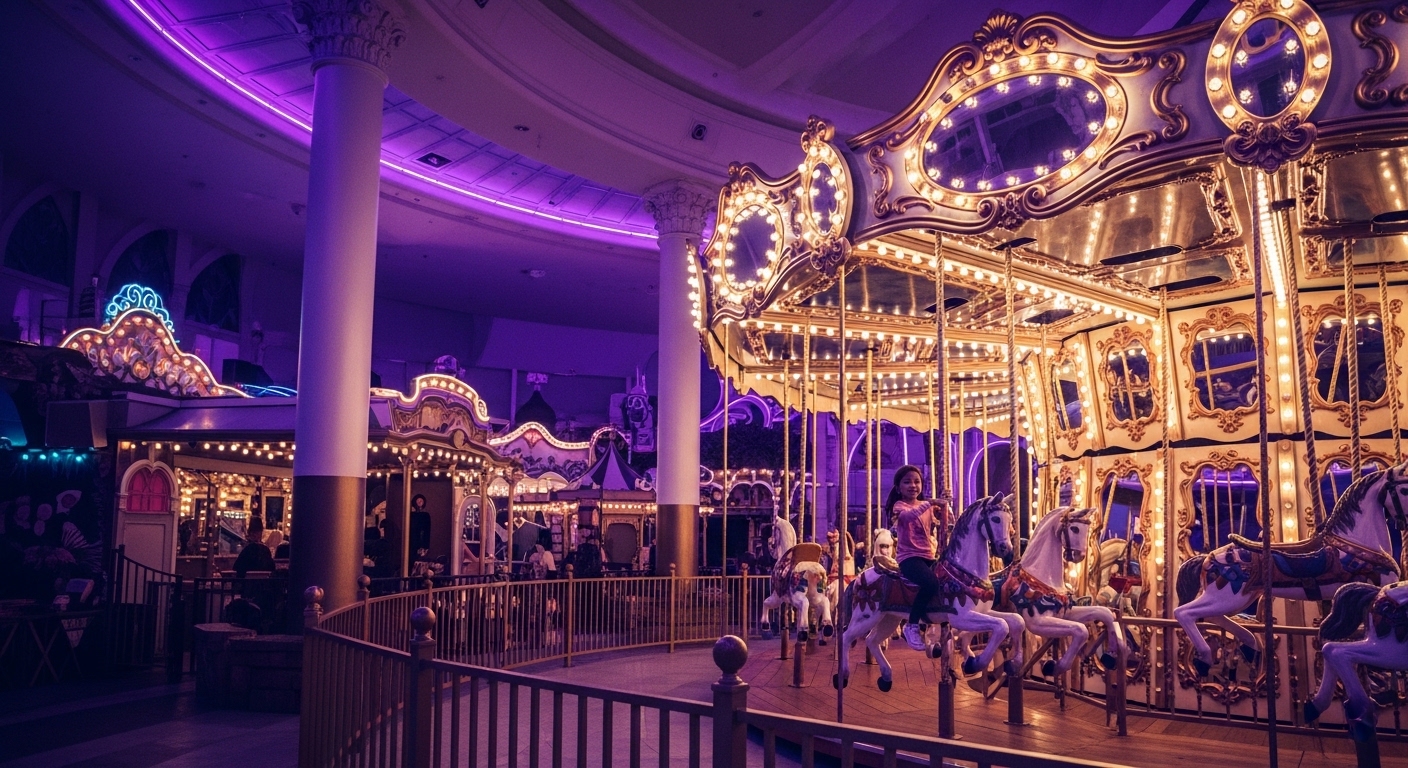 실내 테마파크 '원더박스'는 밤의 유원지 컨셉이라 아이들이 눈을 떼지 못하더라고요.